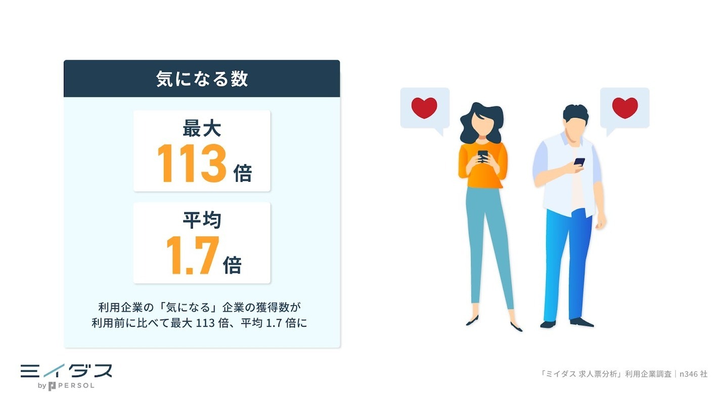 ・「気になる」企業として獲得数が利用前に比べて最大113倍、平均1.7倍