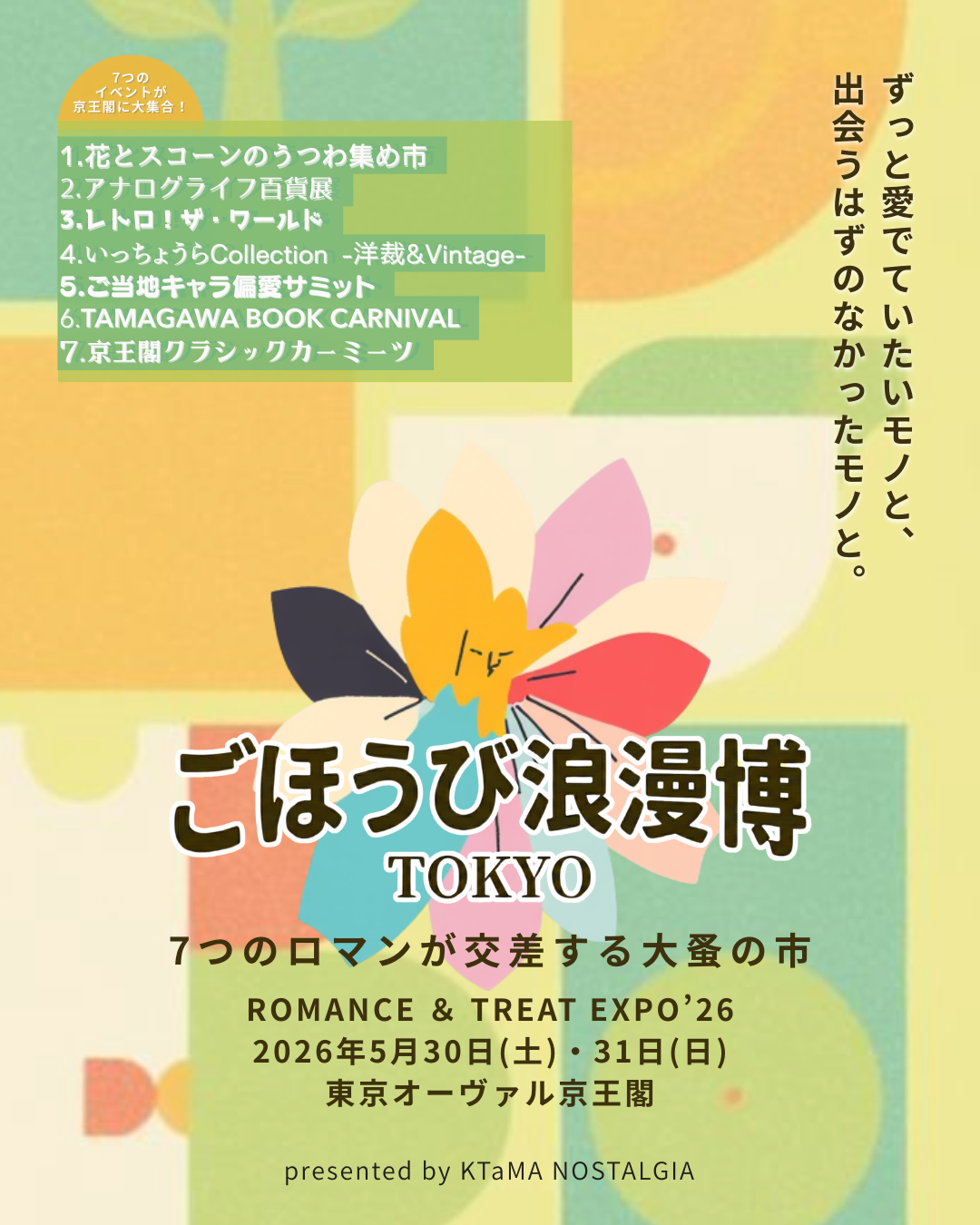 そして、本プロジェクトの第一弾として、2026年5月、調布・京王閣にて、独自の個性を持つ7つのイベントが集結する文化博覧会「ごほうび浪漫博TOKYO -ROMANCE & TREAT EXPO’26-」を開催いたします。
