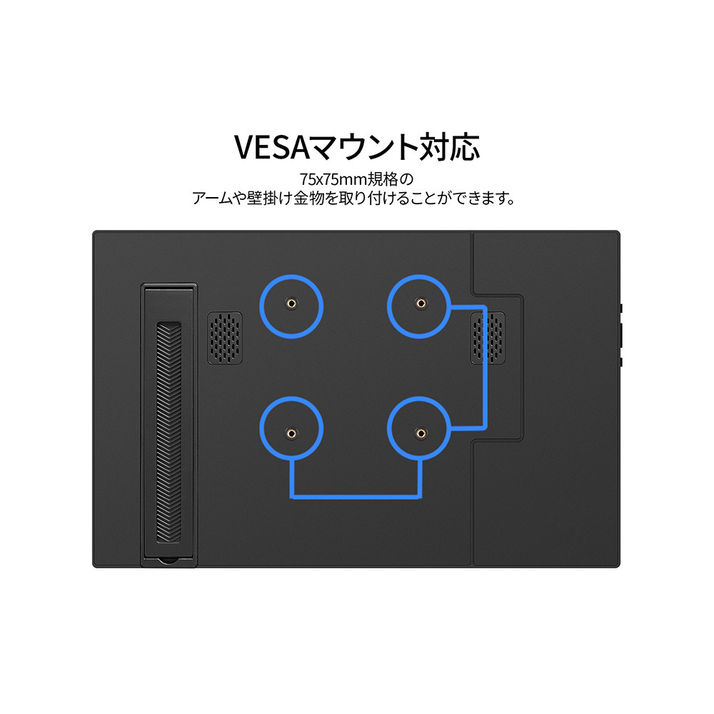 75x75mmのVESAマウントに対応しており、モニターアームなどに取り付けて使用することも可能です。2Wx2のスピーカーを内蔵していますので、動画やゲームなどをお楽しみいただけます。