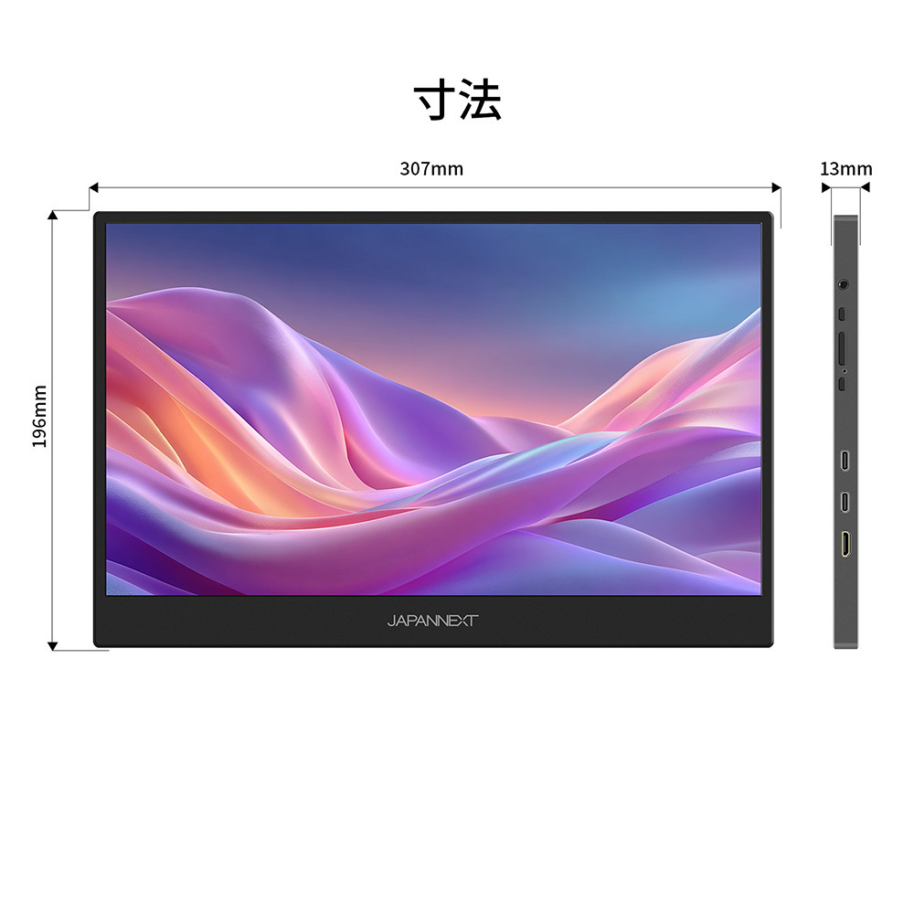 本製品は、13.3インチのIPSパネルを搭載し、使いやすいフルHD(1920x1080)解像度に対応したモバイルモニターです。