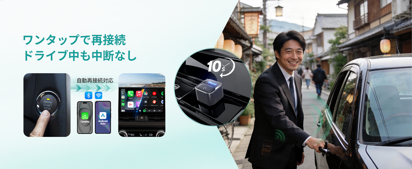 ✔ワンタップ再接続、ドライブ中も途切れない快適さ