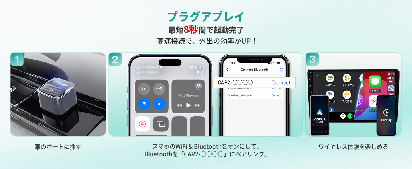 有線接続が必要だったCarPlay/Android Autoを、シンプルにワイヤレス化。