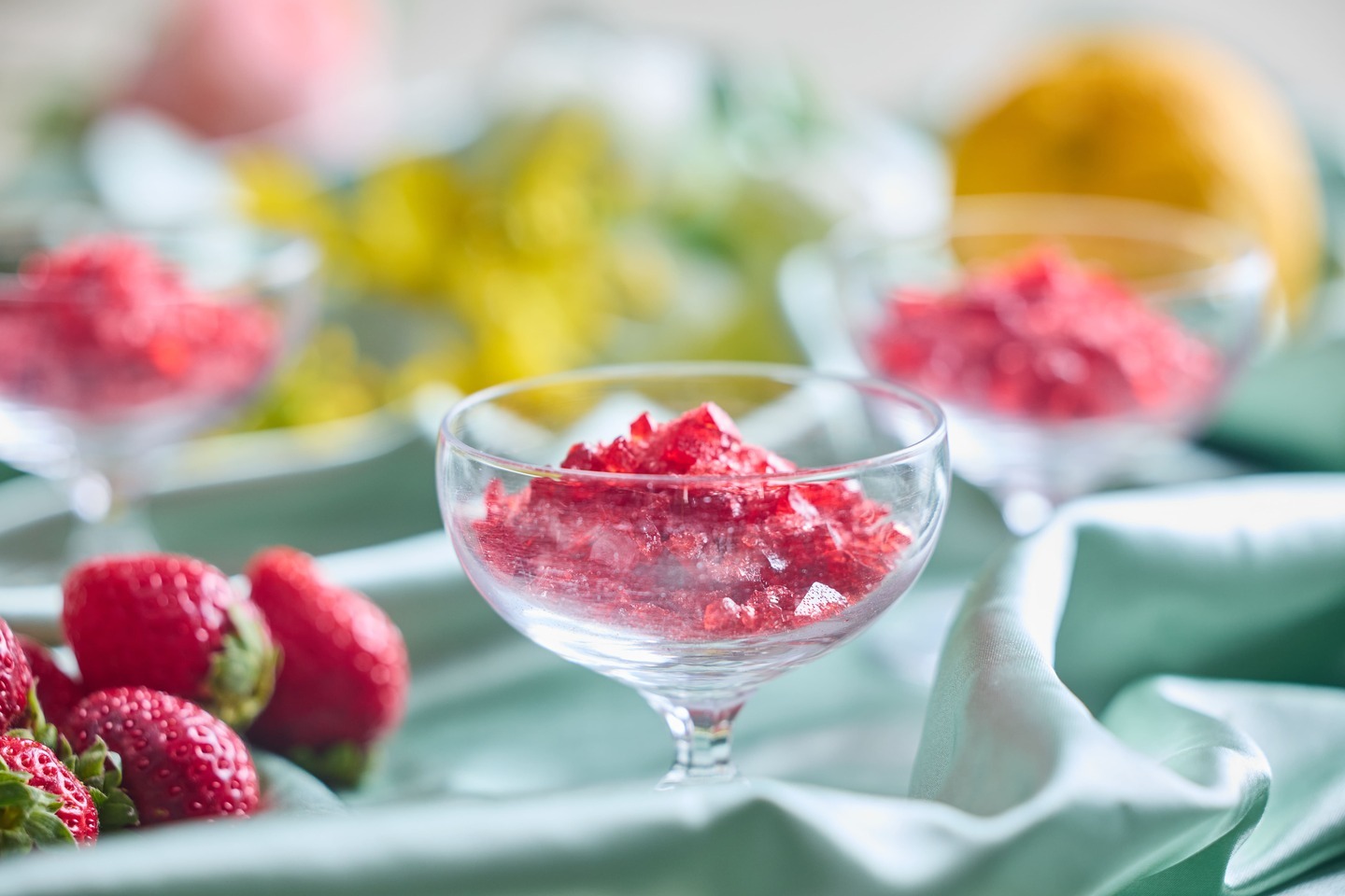 ビュッフェの締めくくりには、苺や和スイーツを中心とした春らしいデザートが並びます。やさしい甘さと軽やかな口どけで、食後でも「もう少しだけ…」と手が伸びるラインアップ。カシュカシュ看板スイーツは、感動級のしっとり感。を誇る「プレミアムショートケーキ~苺と和三盆クリーム~」。和三盆を使ったクリームはコクがありながら後味はすっきり。和三盆入りシロップを染み込ませた生地のしっとり感と、苺の甘酸っぱさが重なり、何度でも食べたくなる春のご褒美スイーツです。さっぱりと楽しみたい方には「柚子と苺のグラニテ」がおすすめ。柚子の爽やかな香りがふわっと広がり、お口の中をリフレッシュ。おなかがいっぱいでも不思議と食べられて、気づけば「もう一回ローストビーフも…」と思ってしまう、ちょっと魔法のような一品です。スイーツコーナーで思わず目が合う「ひよこプリン」は、見ているだけでほっこり。よく見ると、ひとりだけスヤスヤ眠っている子がいるかもしれません。