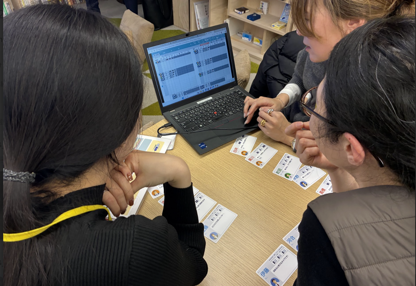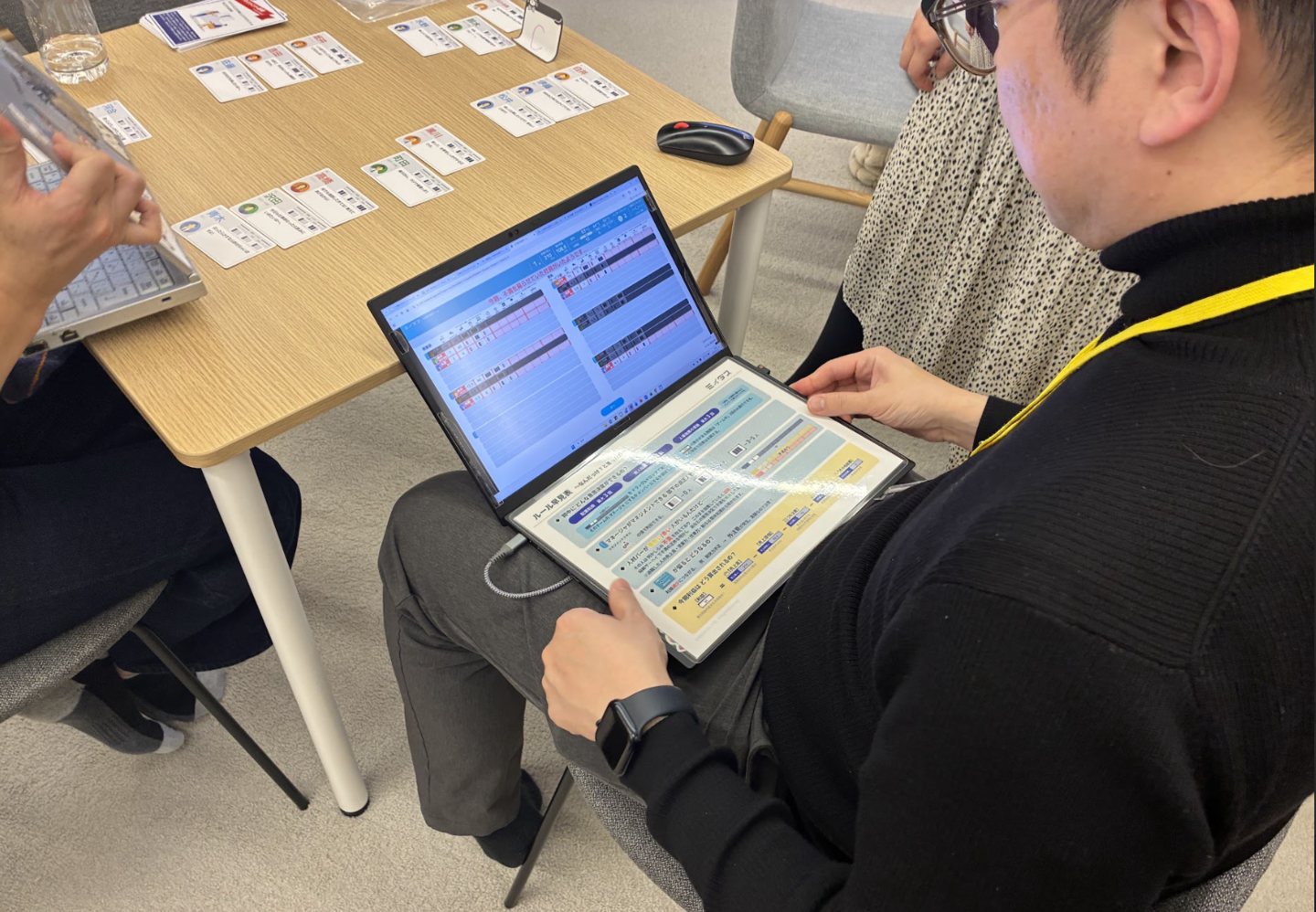 各チームごとに、カードやPCを活用しながら、課題に対する「人事の意思決定」を実施