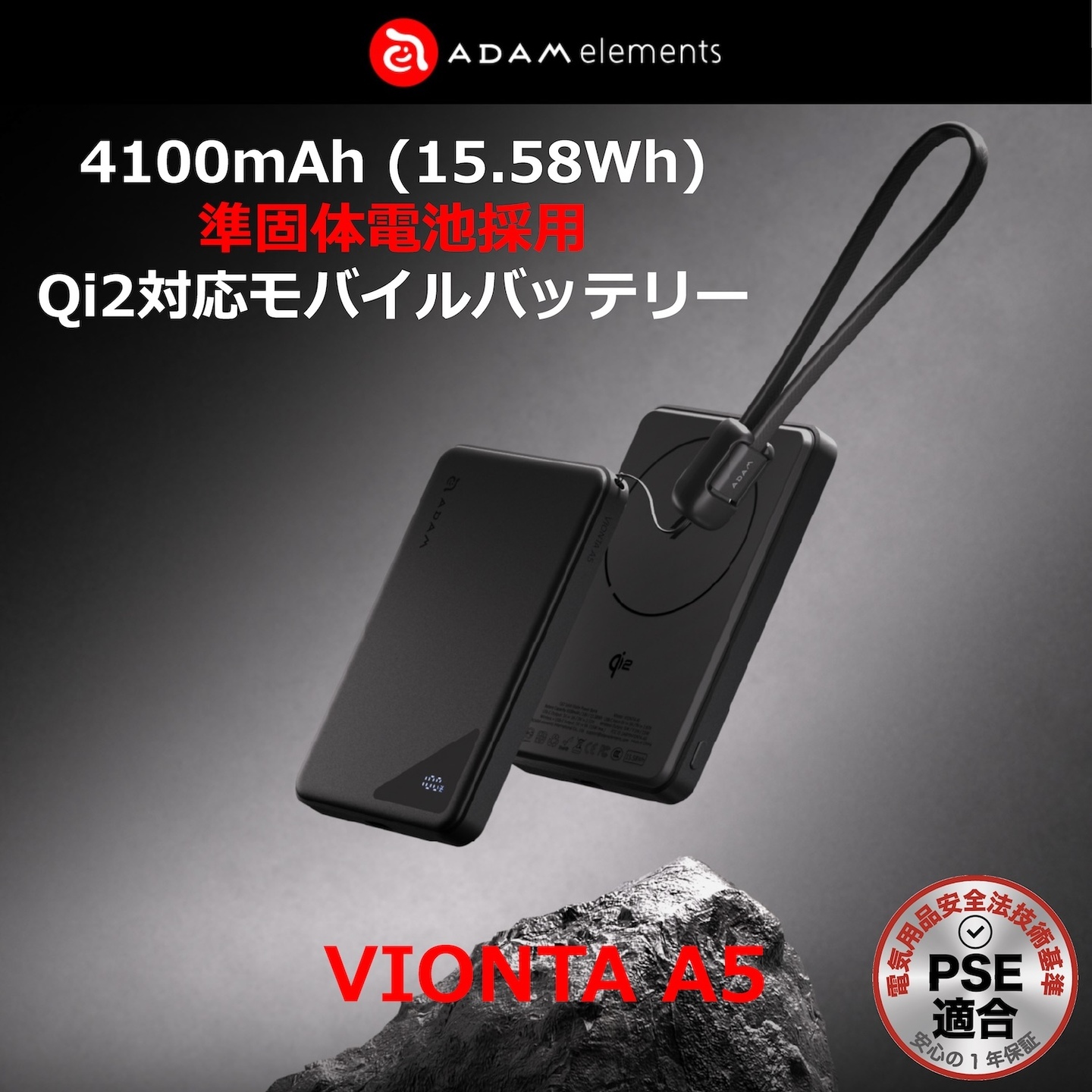 ADAM elementsの準固体電池採用モバイルバッテリー「VIONTA A5」「VIONTA B5/B10」は「機能性・携帯性・安全性」を引き上げたモバイルバッテリーです。