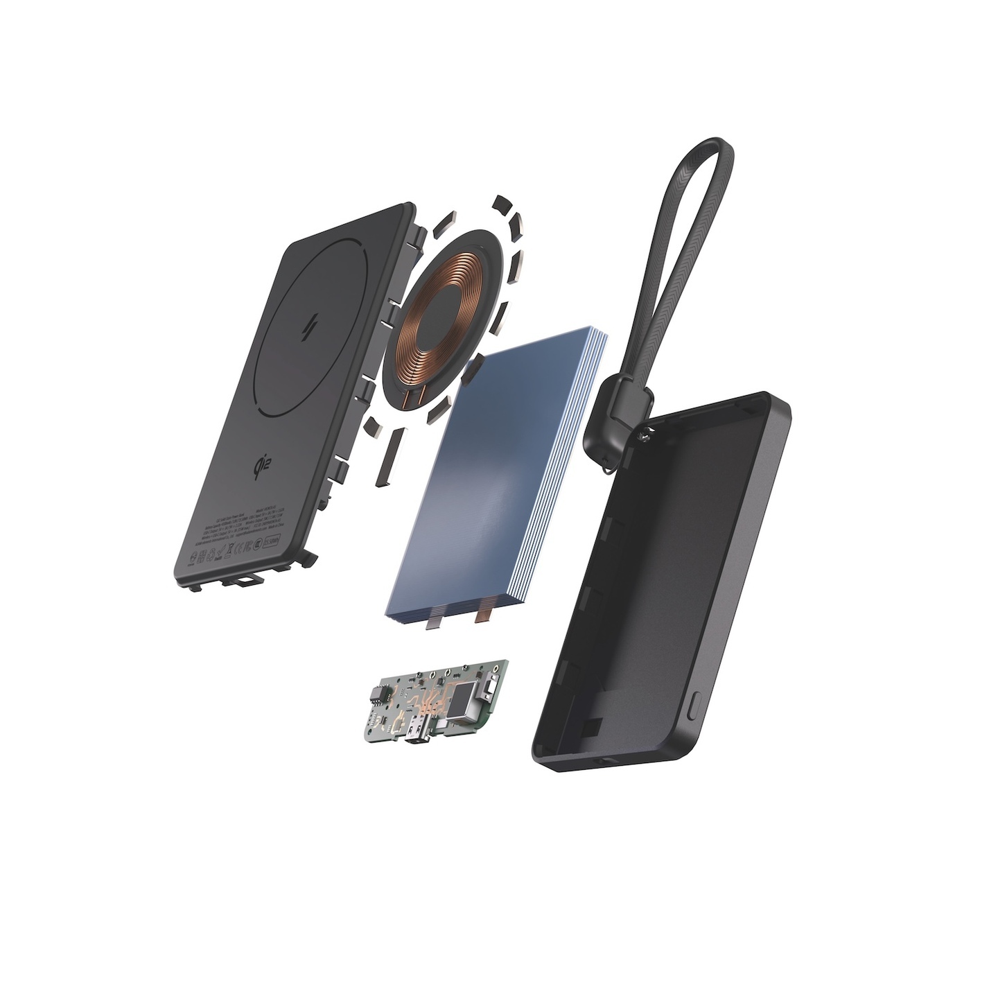ブランド初となる準固体電池を採用し、発火リスクを低減したモバイルバッテリーです。業界初の「機内モード」を搭載し、航空機搭乗中にワイヤレス充電とUSB-C出力を無効化することで安全性と省エネを両立します。
