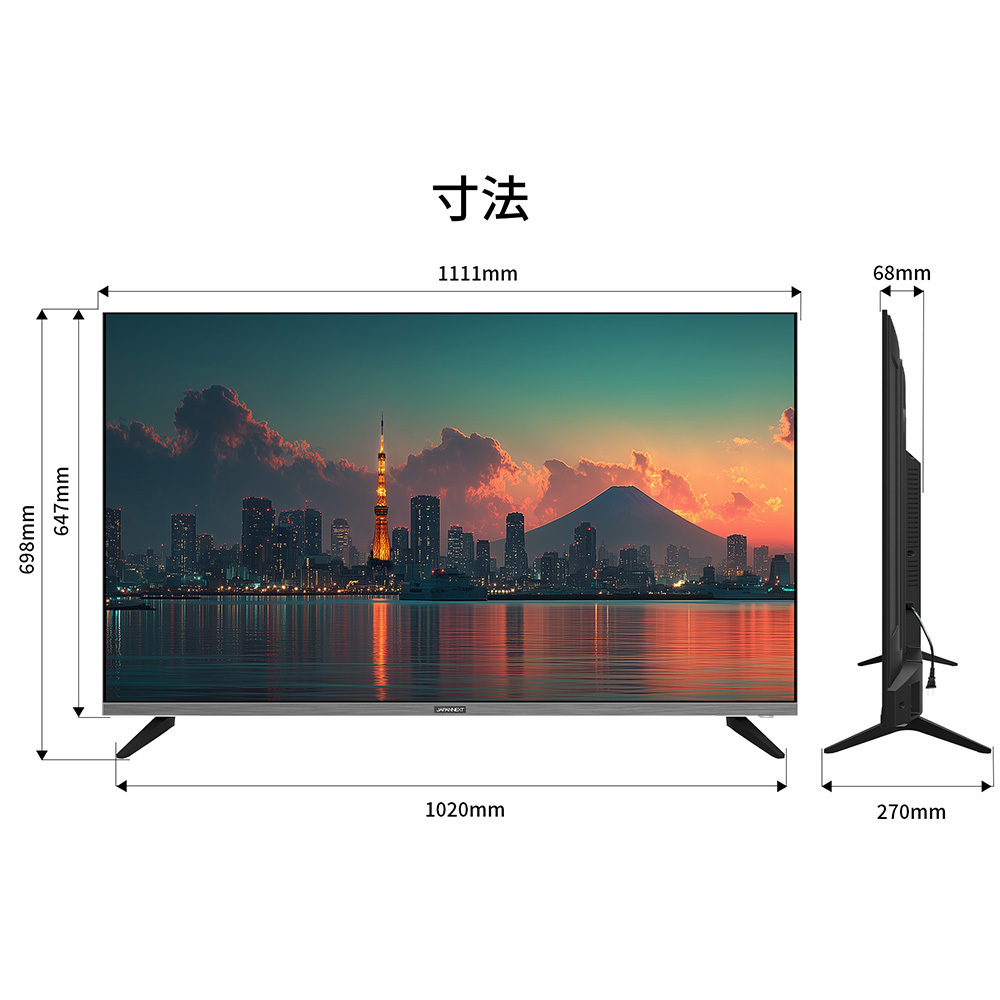 | 外形サイズ(スタンドなし) | 高さ647mm×幅1111mm×奥行68mm |