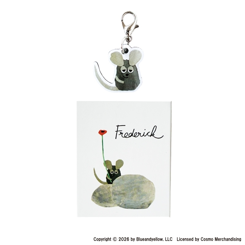 ミニチュアの絵本型ケースを開くと、物語の名シーンが広がり、スイミーやフレデリックたちがカニカン付きチャームとなって絵本の世界から飛び出してくるような体験が楽しめます。