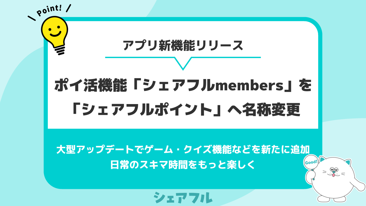 あわせて、より多くの方に機能の価値を直感的に理解いただけるよう、ポイ活機能の名称を「シェアフルmembers」から「シェアフルポイント」へ変更しました。