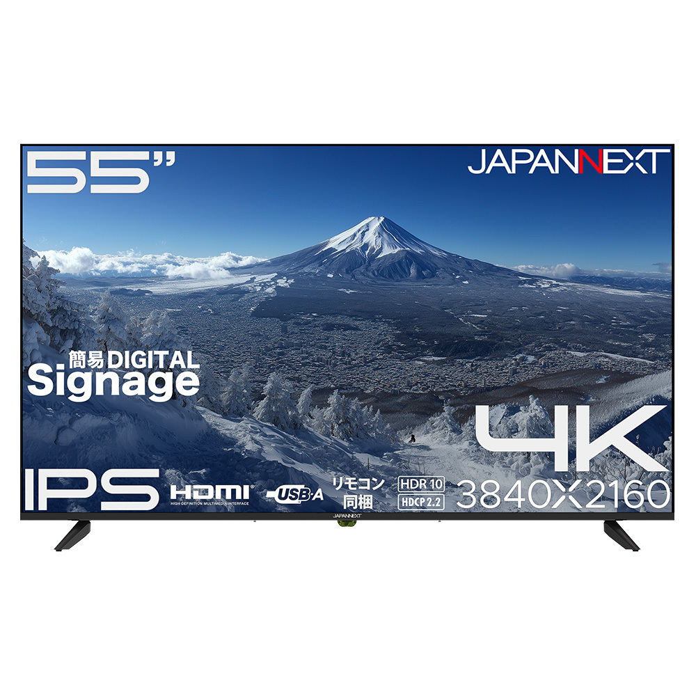 JAPANNEXT が 55インチ IPSパネル搭載 USB メモリ再生対応の大型 4K 液晶モニターをAmazon限定62,980円で2月12日(木)に発売