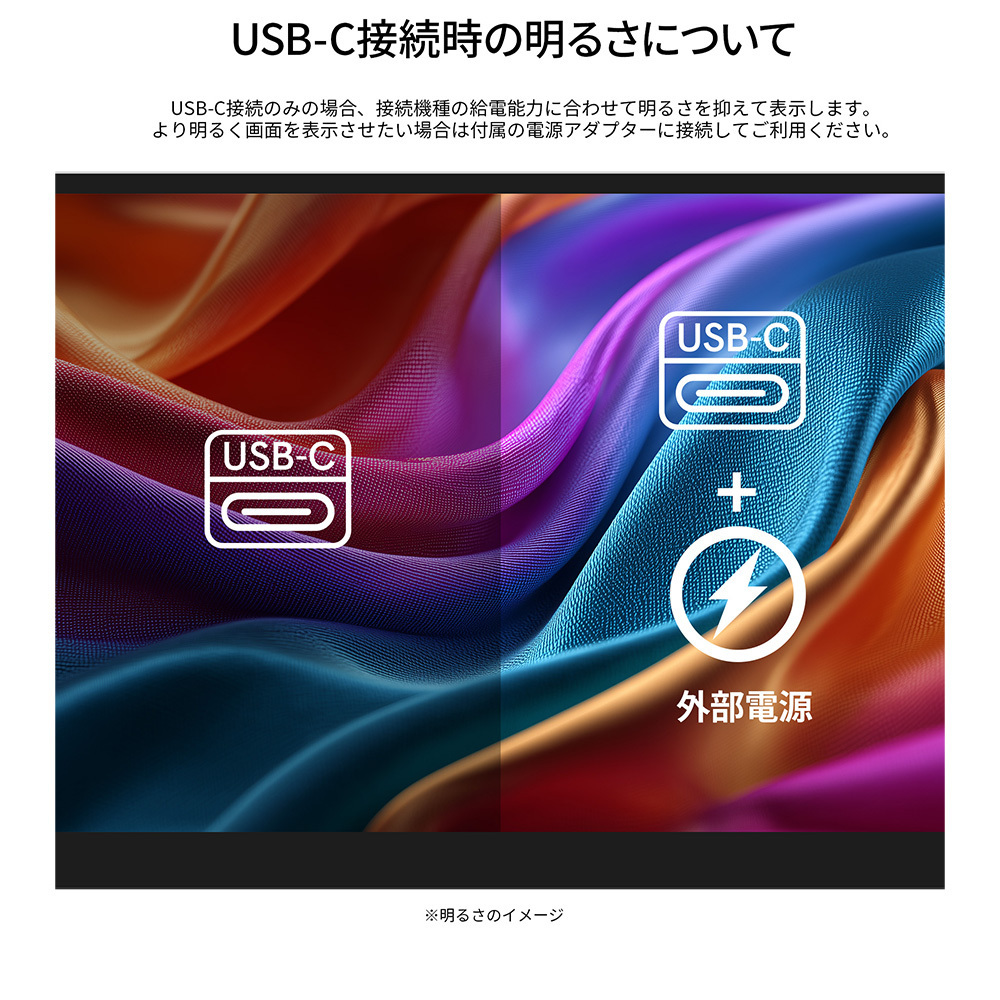 入力端子としてハイブリッド対応(モニターへの電源と映像を1本で送信)のUSB-Cを2つとminiHDMIを1つ装備します。※miniHDMI使用時にはUSB-C端子から電源供給が必要になります。