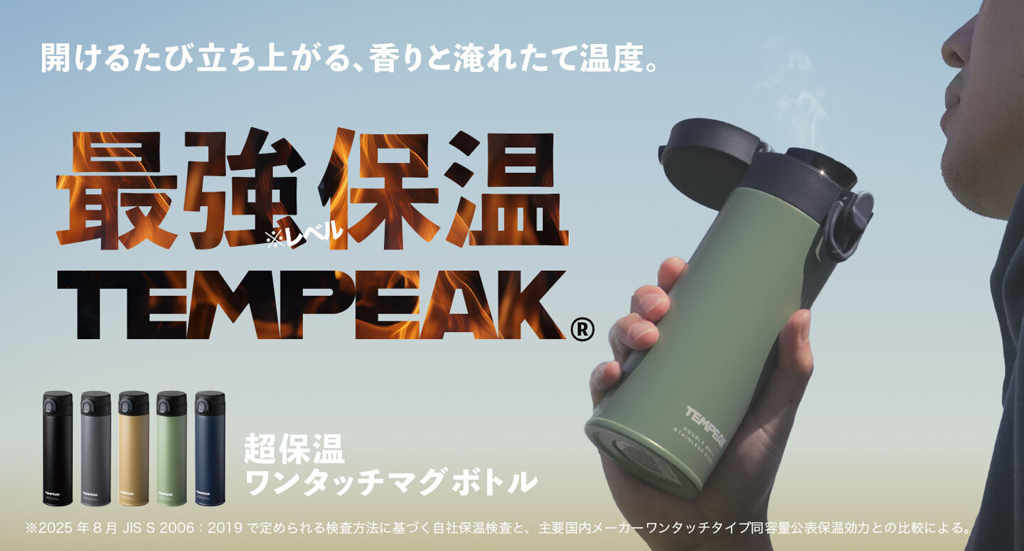 ステンレス製卓上用品・キッチン用品の企画・製造・販売を行う株式会社アトラス(本社:東京都八王子市 代表取締役:林一郎)は、徹底した断熱設計で国内最強レベル(※)の保温力を誇る『TEMPEAK 超保温ボトル』を日常でもお使いいただけるよう、普段使いモデルとして開発した『TEMPEAK 超保温ワンタッチマグボトル』を2月12日(木)より販売開始しました。本製品はTEMPEAKシリーズ最大の特徴である本体の5層の断熱構造と断熱材入りのふたで、6時間後も81℃以上(800mlの場合)というワンタッチタイプの水筒では他に類を見ない高い保温力を実現した真空断熱ボトルです。寒い季節の帰り道でも淹れたてのようなアツアツの飲み物で体を温めることができます。※2025年8月JIS S 2006:2019で定められる検査方法に基づく自社保温検査と、主要国内メーカーワンタッチタイプ同容量公表保温効力との比較による