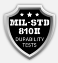過酷な環境下でも利用できることを実証する、MIL規格(米国国防総省調達基準) 。「MIL-STD 810H(MIL規格:ミルスタンダード)」準拠のテストを実施。第三者検査機関により検証される16項目の耐久性能試験をクリアしています。