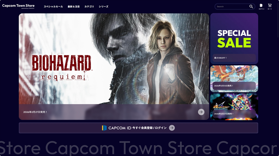 株式会社カプコンは、ポータルサイト「カプコンタウン」に新たにEC機能「カプコンタウンストア」を開設し、2月16日より日本国内向けにサービスの提供を開始いたします。