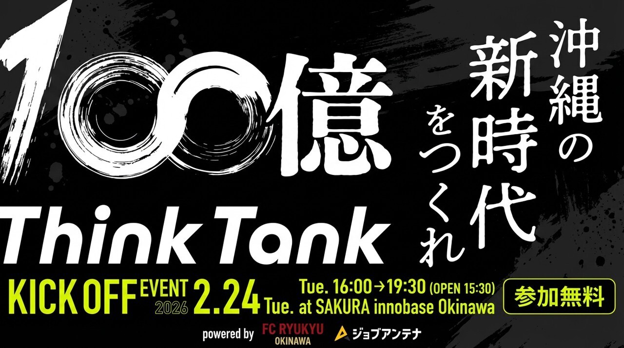 インタラクティブ株式会社(本社:沖縄県宜野湾市、代表取締役社長:臼井 隆秀、以下「インタラクティブ」)は、株式会社XLOCAL(本社:山形県鶴岡市北京田字下鳥ノ巣23-1、代表取締役:山中 大介・坂本 大典、以下「XLOCAL」)が運営するコミュニティ「100億シンクタンク」および琉球フットボールクラブ株式会社(本社:沖縄県沖縄市、代表取締役社長:柳澤 大輔、以下「FC琉球」)と共催で、2026年2月24日(火)にトークイベント「100億キャラバン in 沖縄」を開催します。