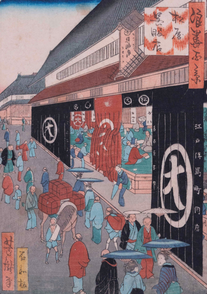「ひとます博物館」とは、本館内各階エスカレーター前の約2帖ほどのスペースを活用した、枡のような形状が特徴のミニ博物館。大丸心斎橋店の300年間のあゆみを、現物からレプリカ、映像など様々な形式で展示し、歴史を振り返ります。また、各階13カ所で展開される「ひとます博物館」の展示物を見て、スタンプを重ねていくことで江戸末期の心斎橋店の浮世絵が完成するスタンプラリー形式の「歴史展リーフレット」もご用意しています。