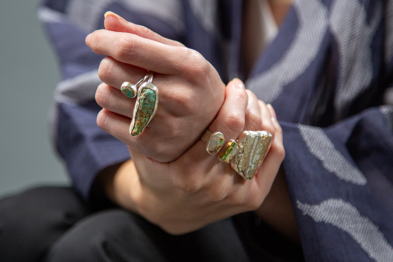 サステナブルな面でも工夫を凝らし、原石をカットした際に出る破片はすべて、ピアスなどの小さなジュエリーへ作り変えています。シルバーも失敗作は溶かして再利用しており、材料の無駄が出ることはありません。「sycamore」は今後、西麻布を拠点に、海外展開も目指します。