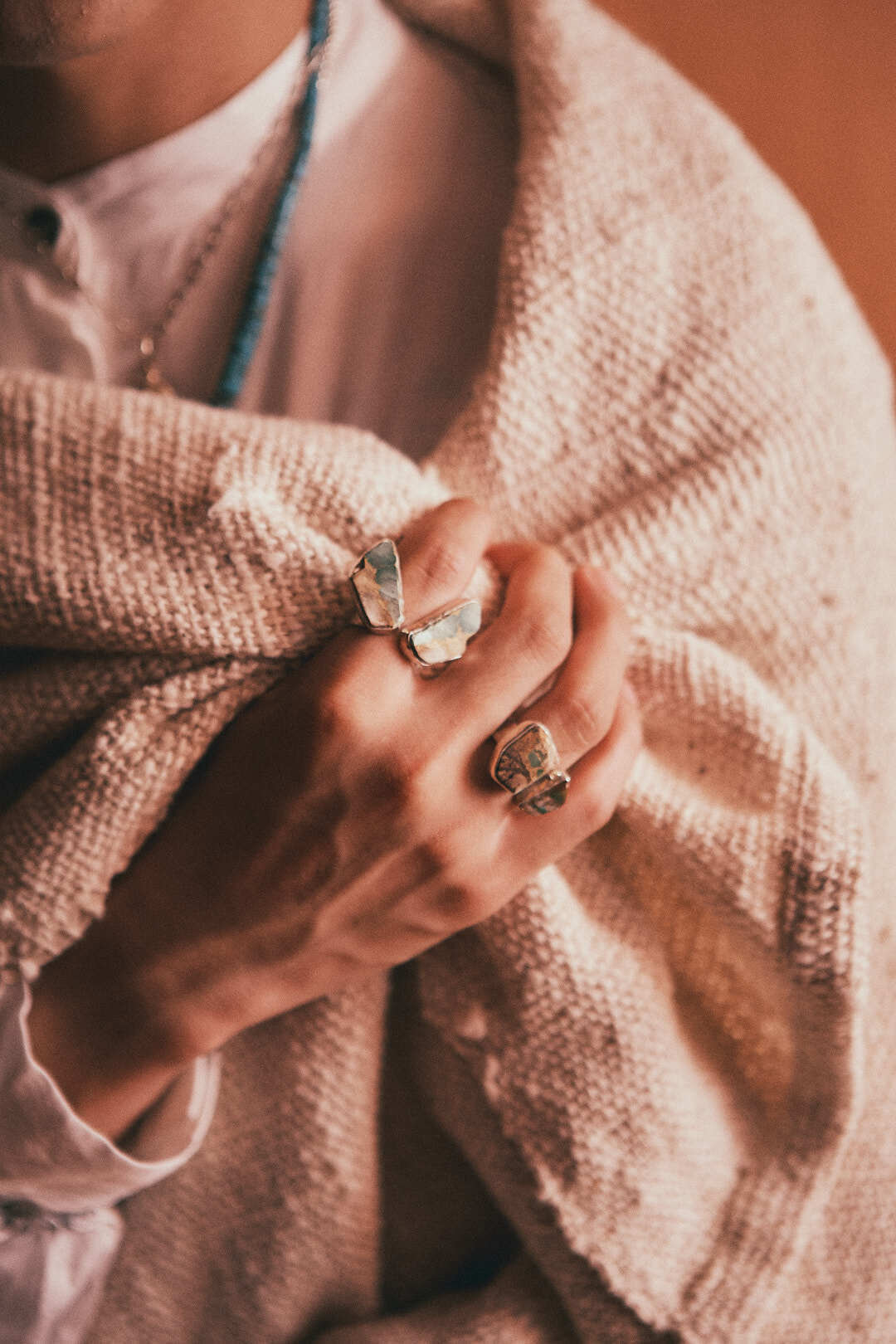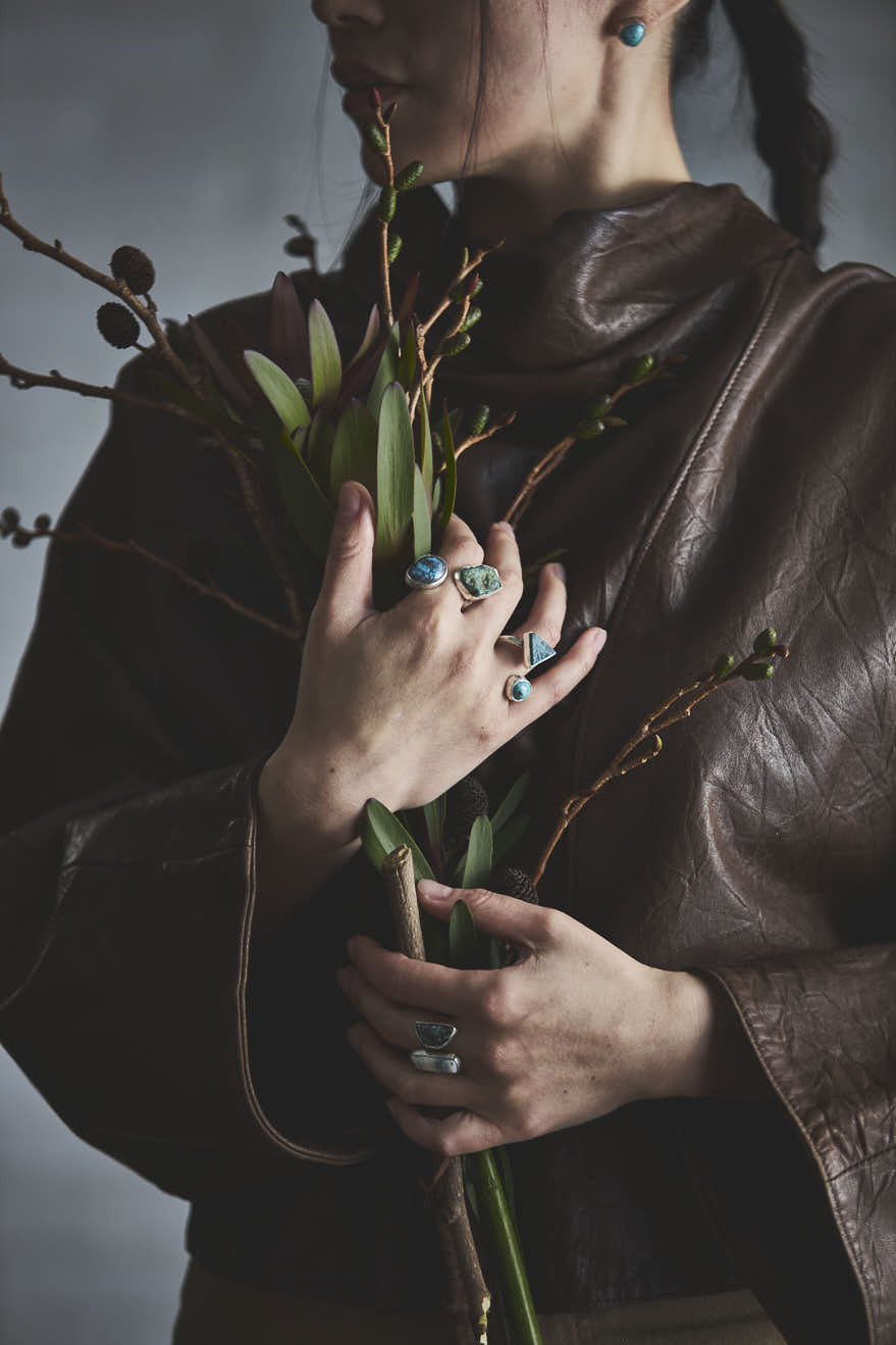 日本では、ターコイズはウェスタンスタイルやバイカー、サーフカルチャーなど、特定のスタイルと結びついて語られがちです。一方アメリカのセドナでは、年齢を重ねた美しい淑女たちが、ターコイズを日常的に身に着けています。もっと日常に寄り添う、エレガントなターコイズジュエリーがあっても良いのではという思いから、「sycamore」は始まりました。”sycamore”は青空を目がけてまっすぐそびえ立ち、嵐にも負けない強さを秘める樹木の名前。自然に年齢を重ねた人が放つ、芯のある美しさの魅力を引き立てたいと願い、選んだブランド名です。