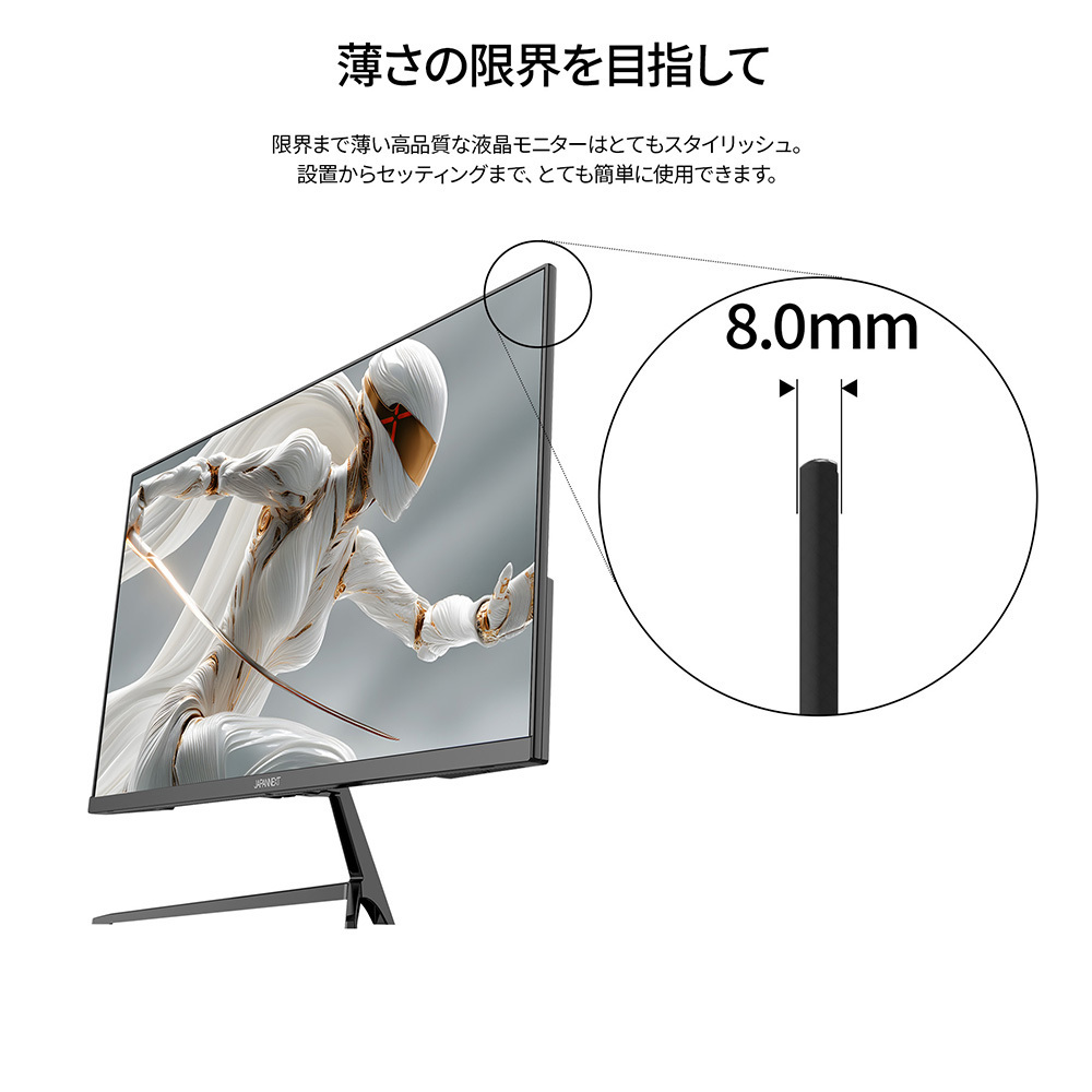 本製品は、23.8インチのIPSパネルを搭載し、144Hzの高速リフレッシュレートに対応したフルHD(1920×1080)解像度のゲーミングモニターです。あらゆる角度から見ても色やコントラストの変化がおきにくいIPSパネルを搭載し、広視野角上下左右178°を実現します。