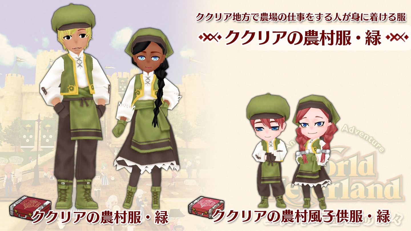 【新規追加コンテンツ『ククリアの農村服・緑』】