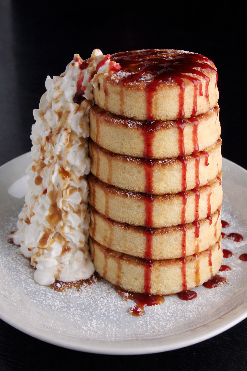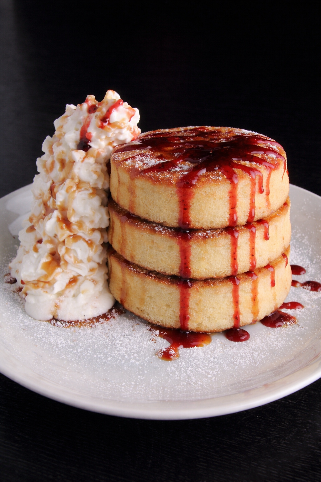 ドリンク代+500円で、高さ約10センチの3段極厚パンケーキが選べる新企画。