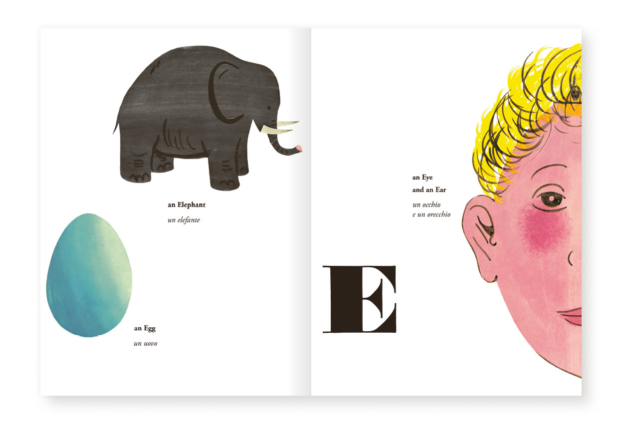 『ブルーノ・ムナーリのABC』は、ブルーノ・ムナーリが1960年にイラストを描き起こし執筆した絵本です。「初めての英語学習本」という副題のとおり、アルファベットや英単語に触れる最初のきっかけとして活用できます。玉ねぎ(Onion)の隣にフクロウ(Owl)、耳(Ear)と卵(Egg)の横にゾウ(Elephant)など、各アルファベットから名前が始まる身近な物の、鮮やかなイラストを惜しみなく掲載。単語の組み合わせによる簡単なストーリーを通し、ブルーノ・ムナーリに特徴的なアイロニーも楽しめます。