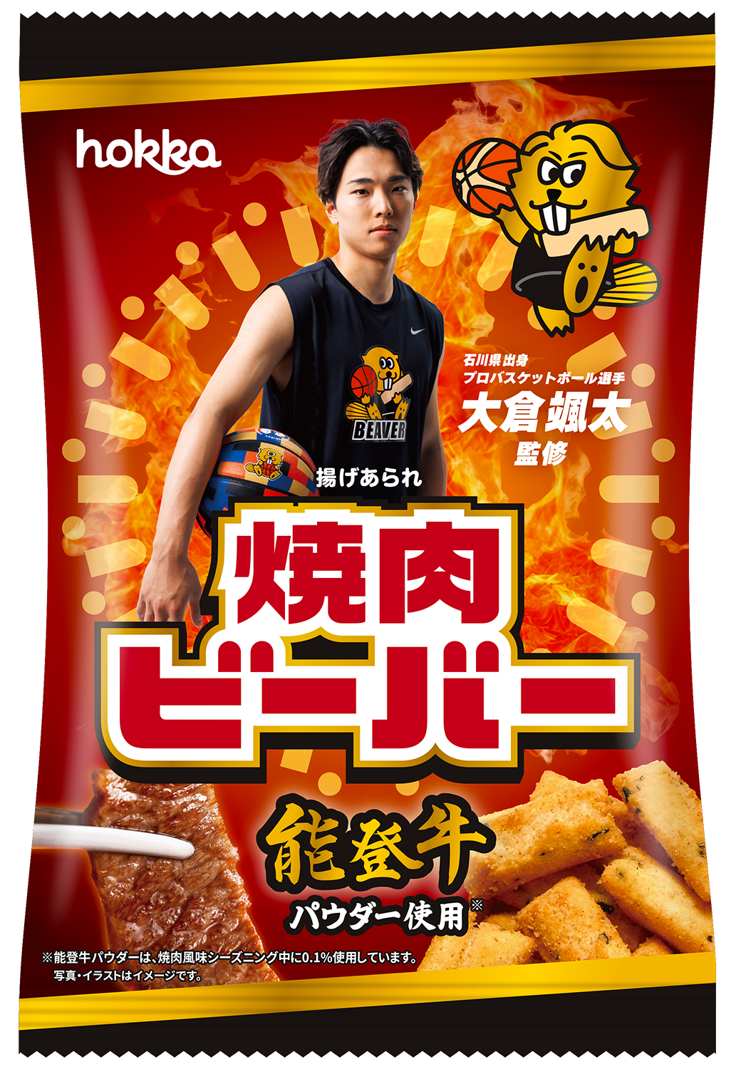 菓子製造を手がける北陸製菓株式会社(本社:石川県金沢市、代表取締役社長:髙﨑憲親)は、石川県出身のプロバスケットボール選手・大倉颯太選手監修による限定フレーバー「焼肉ビーバー」を、2026年3月2日(月)より期間限定発売いたします。