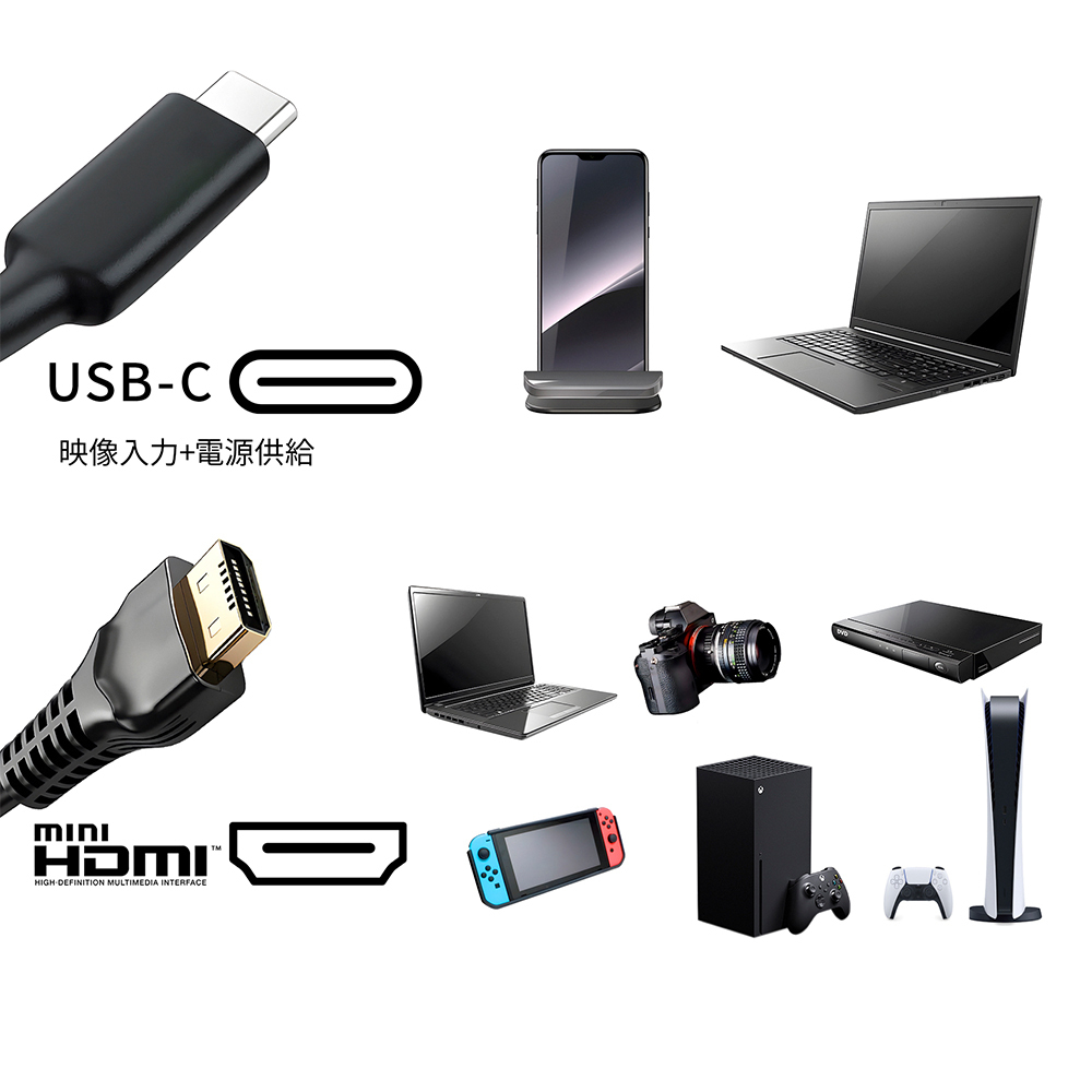 ※miniHDMI使用時にはUSB-C端子から電源供給が必要になります。