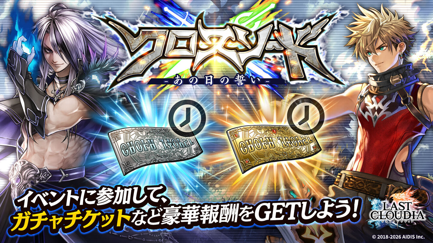株式会社アイディス(本社:東京都渋谷区、代表取締役社長:早貸 久敏)より好評配信中のスマートフォン向けRPG『ラストクラウディア』において、本日2月26日(木)のアップデートにて、新ユニット「破神テレステオ」と新アーク「ログサリウム」が登場しましたのでお知らせいたします。また、イベント「クロスソード -あの日の誓い-」も併せて開催となります他、最大100連無料の「1日1回無料10連ステップアップガチャ 第2弾」も開催中となっております。引き続き「ラストクラウディア」に、ぜひご注目ください。