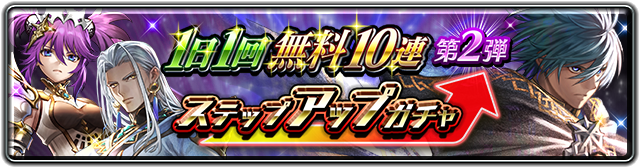 本ガチャは1日1回無料で引けるステップアップ10連ガチャで、STEP5までを2周引くことができます!