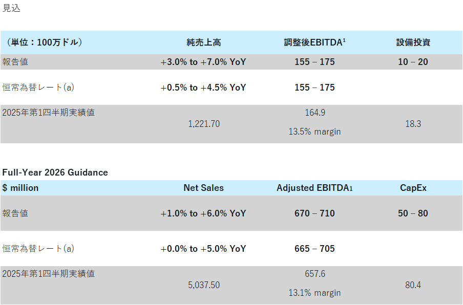 売上高および調整後EBITDA¹は、現地通貨建ての予測を換算するために、2026年1月の最初の3週間における平均日次為替レートを使用しています。