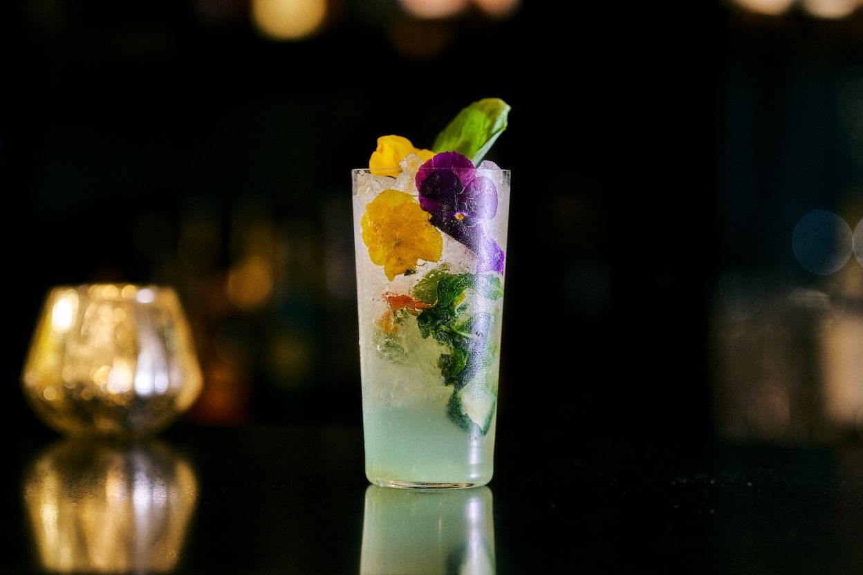 ラムベースのモヒートにバジルを加えた、爽やかなロングカクテル。