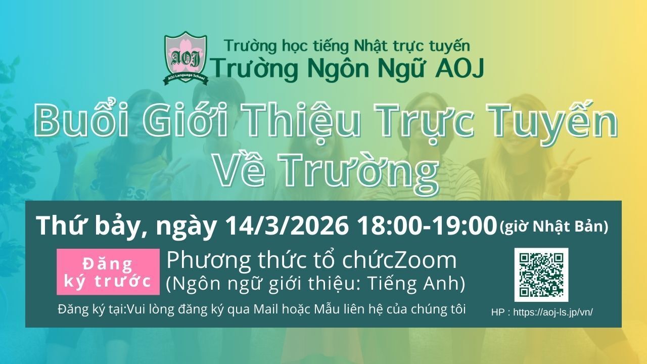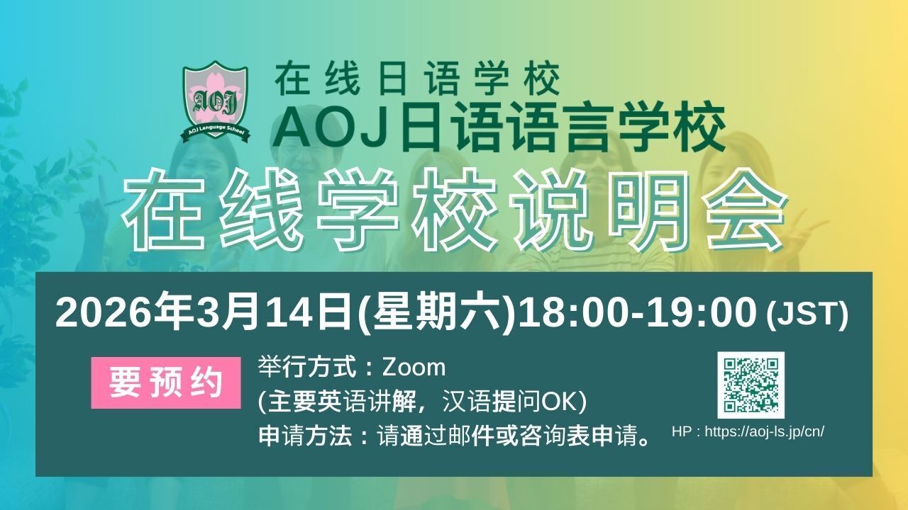 オンライン日本語学習サイト(Attain Online Japanese)運営、eラーニング制作のアテイン株式会社(本社:東京都江東区、電話:03-6381-8641、代表 福嶌崇臣、資本金1億1470万円)が運営するオンライン日本語学校AOJランゲージスクールにて、2026年春学期開講に向け、第2回オンライン入学説明会を日本時間3月14日(土)18:00-19:00に開催します。こちらが春学期入学申込締切前の最後の説明会となります。参加には事前申し込みが必要です。HPより承っておりますので、是非お申し込みください。https://forms.gle/JkrdnL2JWG5ddEKn7 詳細はこちら:https://aoj-ls.jp/admission/information-session.html