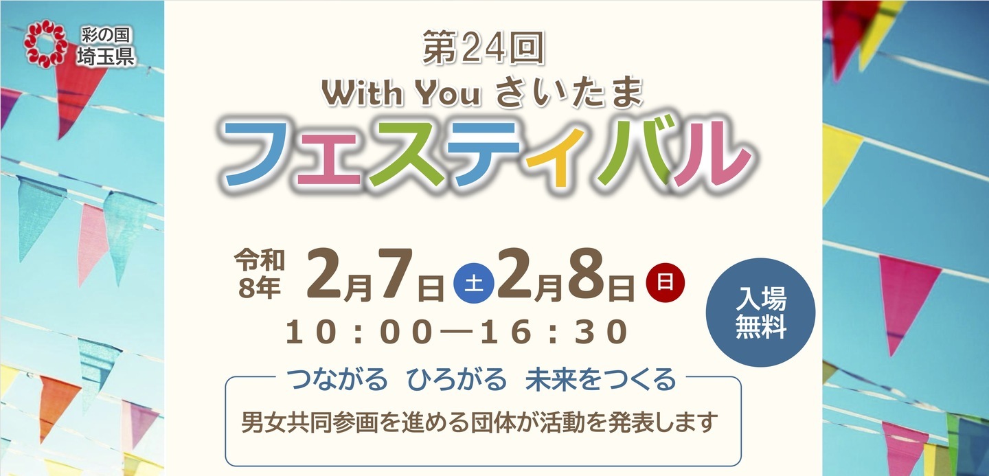 埼玉県災害ボランティア団体ネットワーク「彩の国会議」(本社:埼玉県北葛飾郡杉戸町杉戸2797-4 NPO法人すぎとSOHOクラブ内、代表幹事:とよしま亮介)は、令和8年2月7日、8日の2日間に渡って開催された「第24回 With You さいたま フェスティバル(主催:With You さいたま(埼玉県男女共同参画推進センター))」にオンライン出展しました。