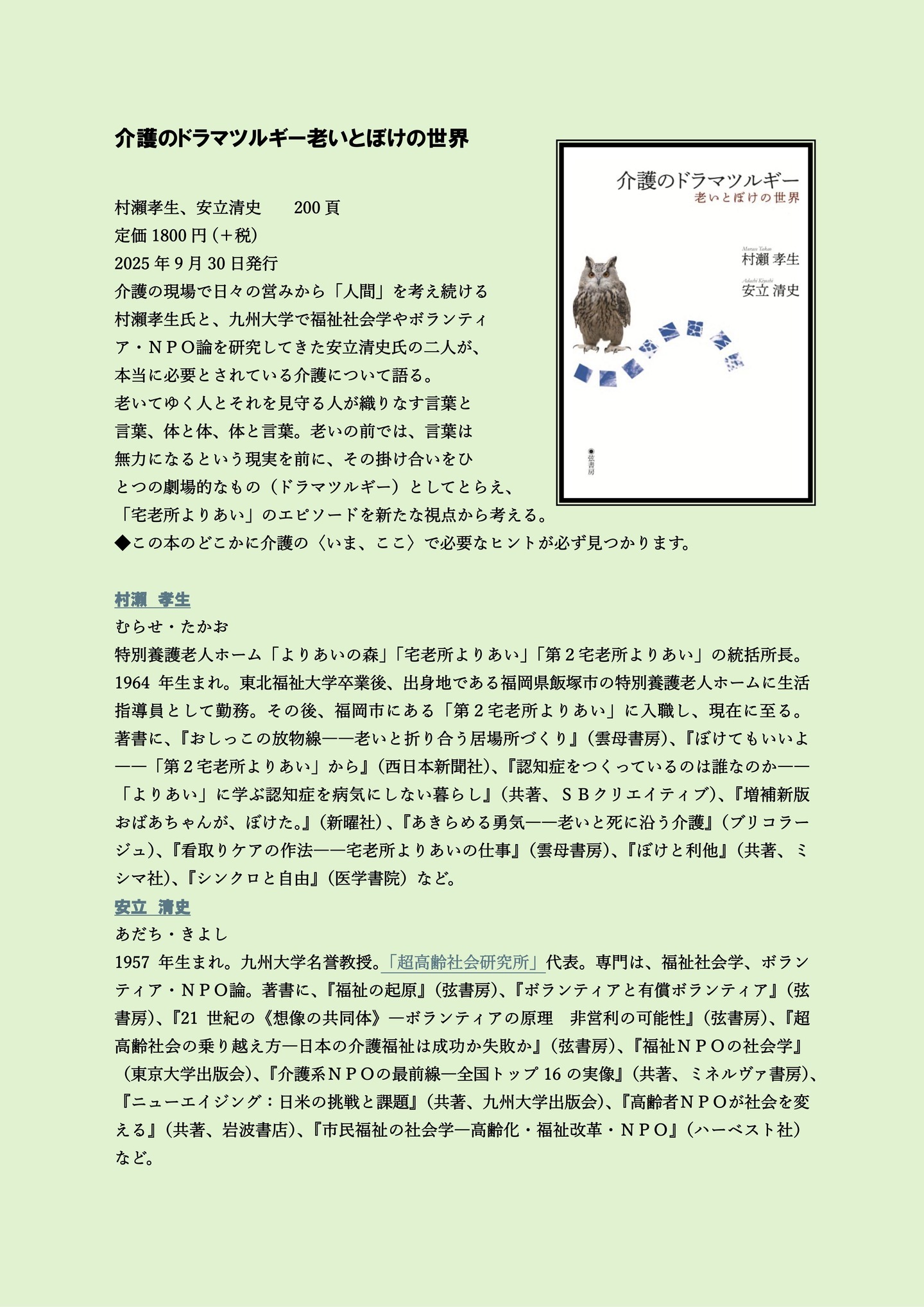 2025年度第5回(第2回関東)定例研究会/看護・ケア研究部会公開企画において介護系事業者900団体の会員を有し、身近な地域での助け合い・支え合い、優しい福祉のある地域社会づくりを推進している認定特定非営利活動法人市民福祉団体全国協議会政策研究委員長でもある安立清史先生(九州大学名誉教授/社会学者)が登壇されます。