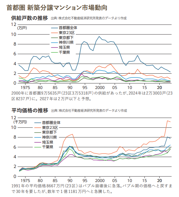 市場価格高騰の背景には、この10年で約40%以上アップした建築費の高騰や、2027年には2万戸を割り込むと予想される新規供給戸数の大幅な減少といった構造的な要因があります。