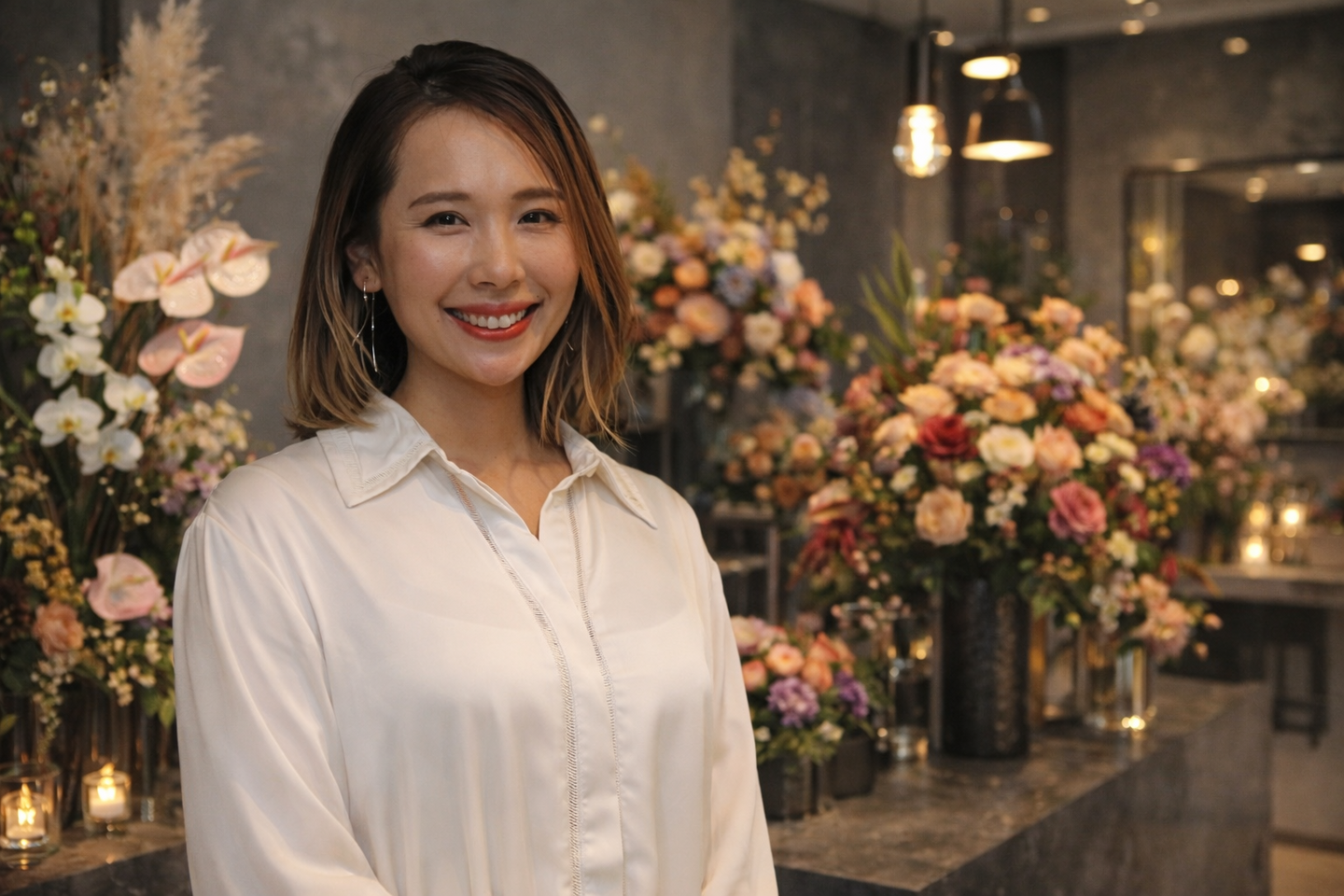 帰国後はフラワーコーディネーターとして花業界に入り、花屋にて勤務。冠婚葬祭の空間装花やフラワーデザインを担当し、仕入れから打ち合わせ、デザイン制作まで一貫して手がける。