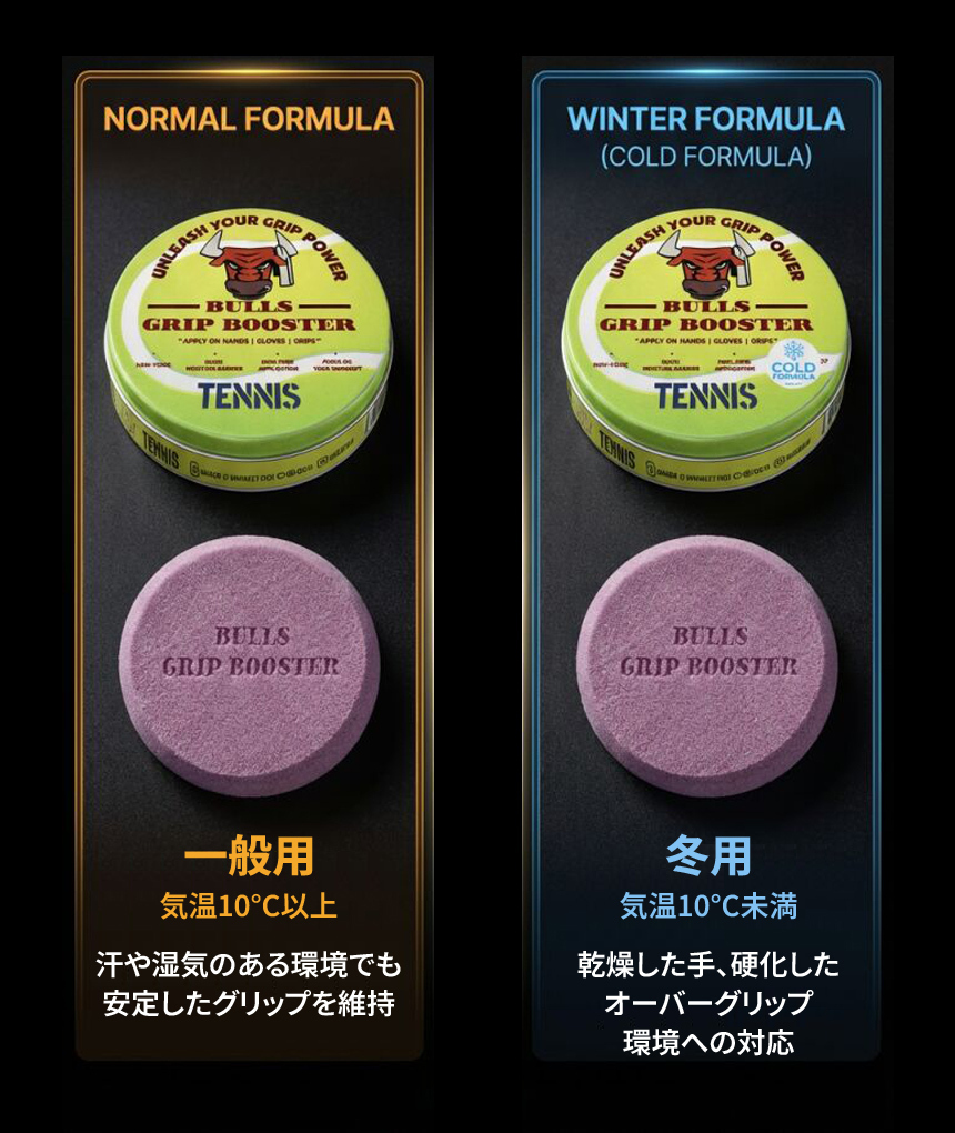 ブルスグリップブースターは、この季節特有の課題を解決するため、「一般用」と「冬用」の2つの専用フォーミュラを開発しました。