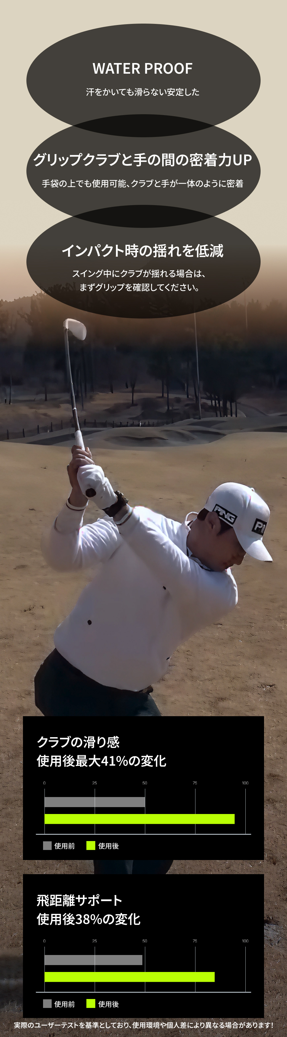 ゴルフ用:グローブとグリップに特化した設計