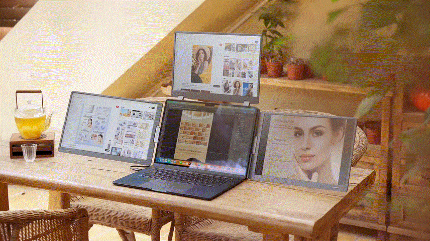 Type-C1本でノートPCが最大4画面に。折りたたみ式トリプルモニター「FOPO S780Pro」がMakuakeで3月19日18時公開
