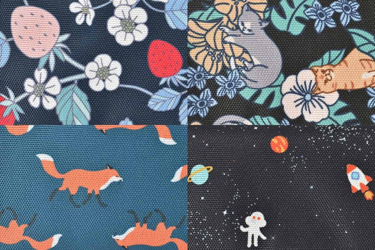 ラインナップはバックパックやボディバッグなど全11種。耐久性に優れた生地を使用し、一部アイテムには表面の撥水加工と裏面の防水加工が施され、雨の日やレジャーでも活躍します。すべてのアイテムに“KiU and Bleu Bleuet”のロゴ入りです。特に注目の柄はストロベリーNV、フラワーキャット、コズミックジャーニー、フォックスBLの4種類。カラフルなデザインがおでかけをもっと楽しく、ちょっと特別にしてくれます。