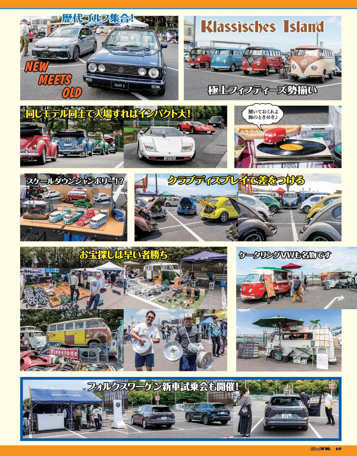 2006年12月に「第1回StreetVWs Jamboree」を開催して以来、2018年度までお台場にて開催しましたが、オリンピックの関係で2019年はフォルクスワーゲンジャパン本社(豊橋)、2020年は千葉県蘇我市にあるフェスティバルウォーク蘇我にて開催しました。そして2026年も昨年同様フェスティバルウォーク蘇我にて開催いたします。空冷フォルクスワーゲン(以下VW)ファンからは、国内最大規模のイベントとして広く認知されており、国内外からも注目される旧車VWイベントとなりました。当日は、北は東北から南は九州まで、日本全国からVWオーナーが集合し、自慢の愛車を披露いたします。また、キュートなスタイルのVWゆえに、VWフリークはもちろんのことクルマに興味のなかった一般のお客様も多く足を運んでいただき、女性やご家族連れの皆様に、一日ノンビリとしてVWライフを楽しんで頂いております。