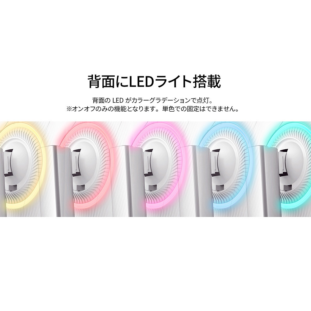 本体カラーにホワイトを採用。モニターベゼルや付属ケーブルも白で統一しており、爽やかでおしゃれな空間や、デバイスを白で揃えたい方に最適です。スタンドにはシルバーカラーを採用し、白基調の中にさりげないアクセントを加えています。