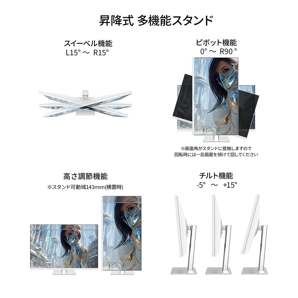 昇降式多機能スタンド搭載 4Kゲーミングモニター(ホワイト)商品概要