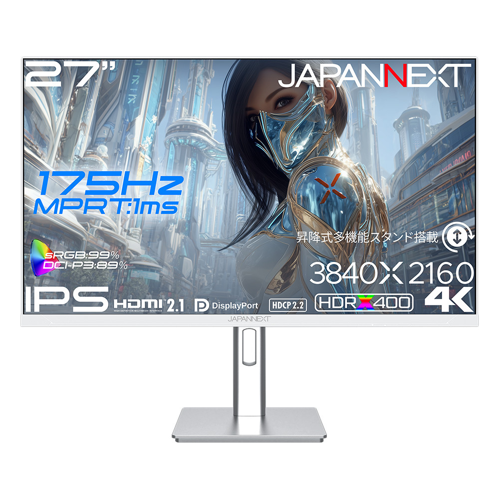 JAPANNEXTが27インチ IPSパネル 昇降式スタンド搭載 175Hz対応の4Kゲーミングモニター(ホワイト)をAmazon限定 50,980円で発売