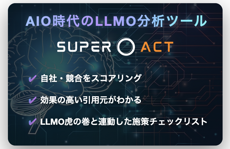 本メディアは、同社が提供するLLMO分析ツール「SUPER ACT」と連動しています。