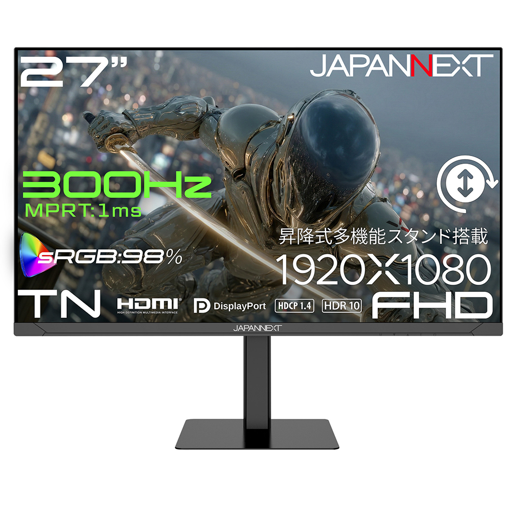 JAPANNEXTが27インチ TNパネル 昇降式多機能スタンド搭載 300Hz対応のフルHDゲーミングモニターを29,980円で3月19日(木)に発売