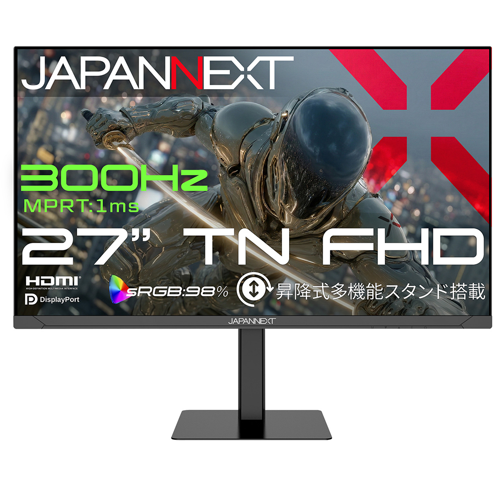JAPANNEXTが27インチ TNパネル搭載 300Hz対応のフルHDゲーミングモニターをECサイト限定 23,980円で3月19日(木)に発売