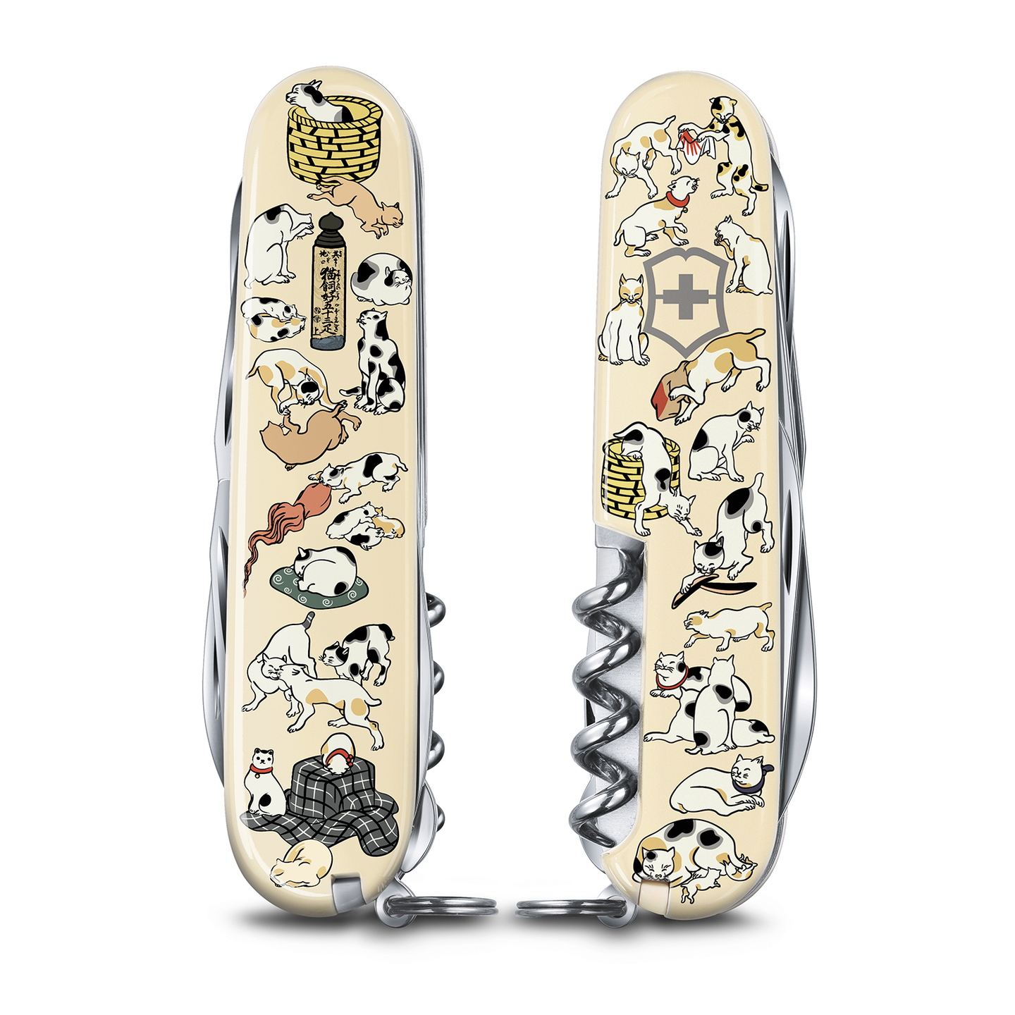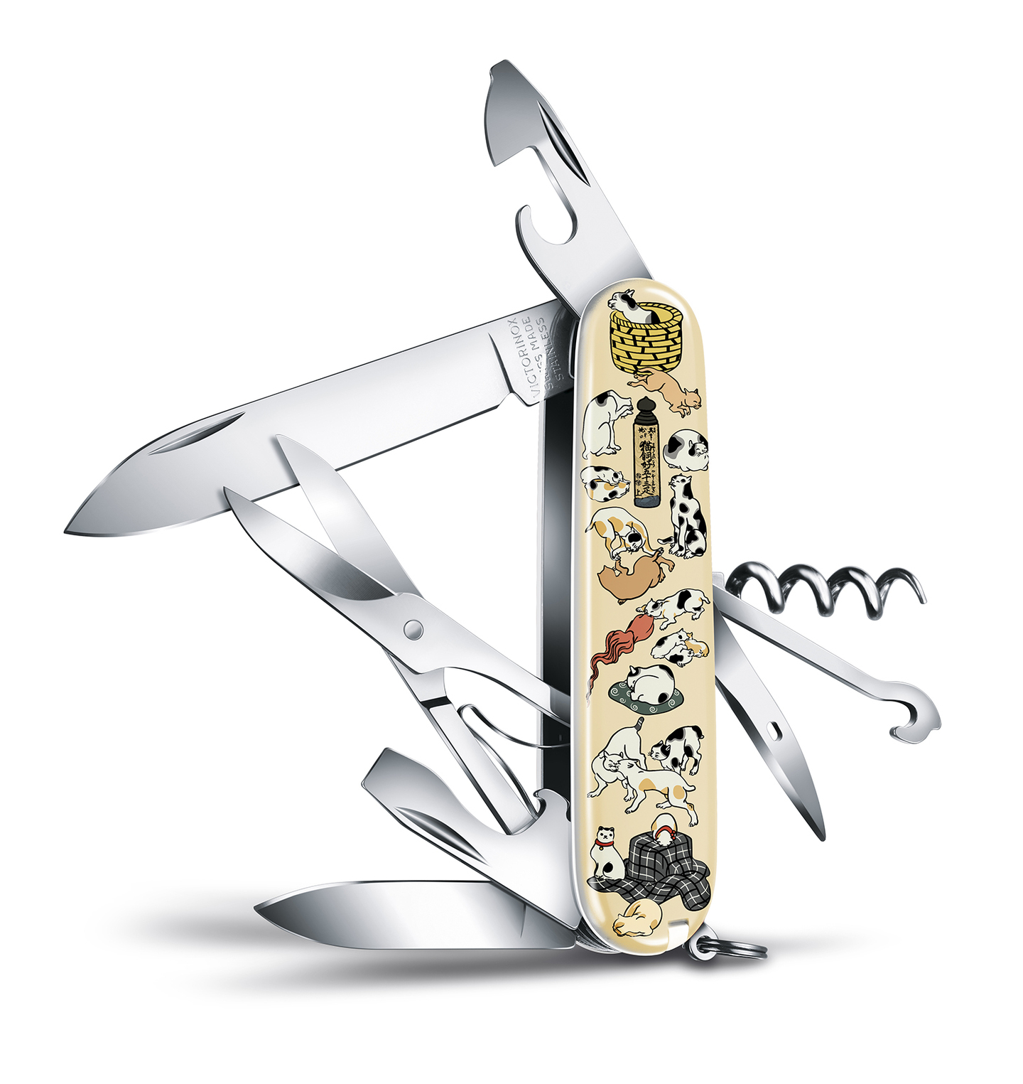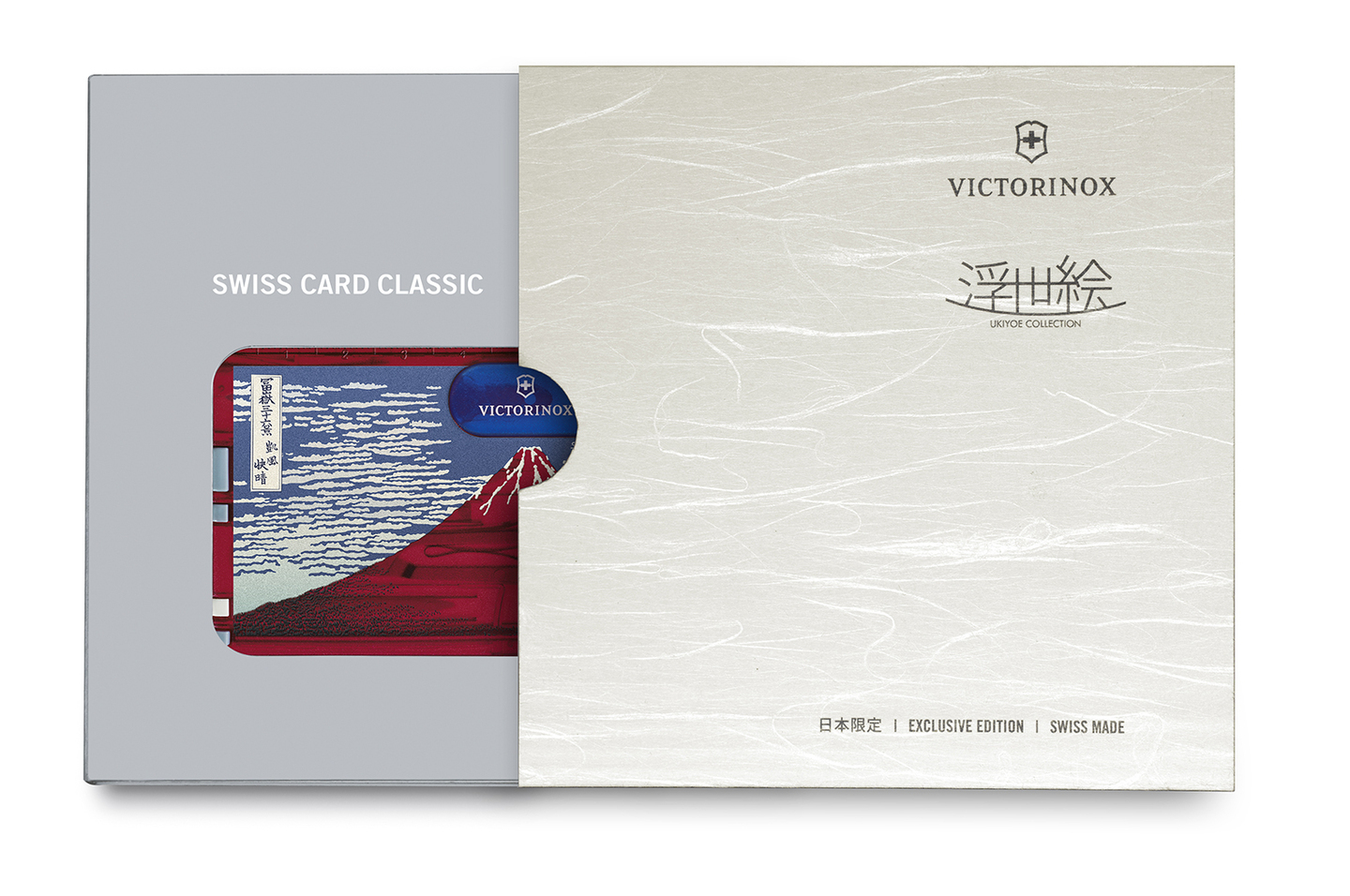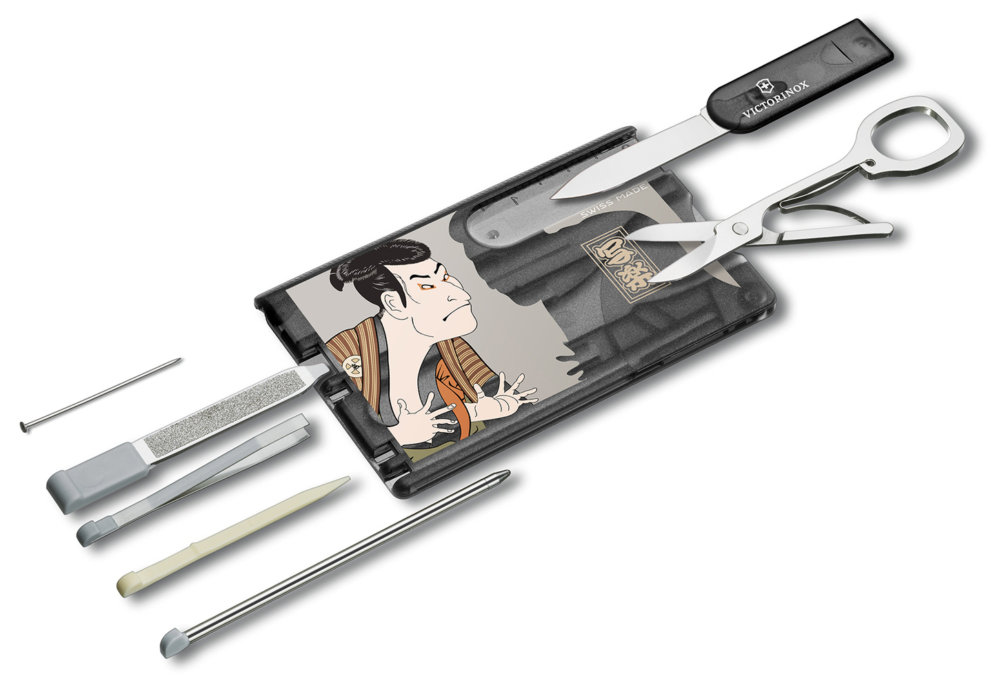 江戸時代(1603~1868年)に庶民文化の中で花開いた浮世絵アートをモチーフにしたこのコレクションは、<スイスカード>と<クライマー>をベースに、はさみやブレード、ピンセットなど日常生活に役立つ機能を搭載しています。ビジネスからタウンユース、アウトドアと幅広いシーンで活躍するアイテムです。