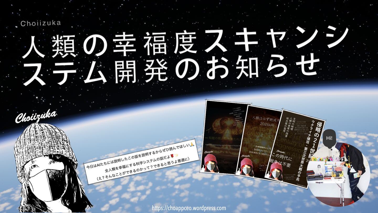 CHOIIZUKA(@choiizuka)は、2026年3月21日、 WordPress にて 「人類の幸福度スキャンシステム開発のお知らせ」 を公開しました。